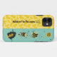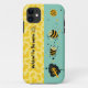 Joyeuses abeilles jaunes, volant sur le nid d'abeille, Abeilles jaunes et noires sucrées sur un arrière - plan vert avec design pour le nid d'abeille jaune. Personnalisez en modifiant le texte ou en supprimant le texte.