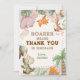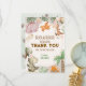 Envoyez un « merci » doux et préhistorique avec cette adorable carte de remerciement d'anniversaire à motif de dinosaures ! Avec ses dinosaures aquarelles amicaux, ses ballons pastel, ses feuilles de jungle, ses œufs de dinosaures et son volcan joyeux, cette carte correspond parfaitement au thème d'anniversaire dinosaures de votre enfant. Cette carte donne à votre enfant un moyen amusant et personnel de remercier ses amis et sa famille d'avoir célébré leur journée spéciale. La palette de couleurs pastel et les dinosaures peints à la main font de cette carte de remerciement un cadeau parfait pour les tout-petits, les enfants d'âge préscolaire et tous les enfants qui aiment les dinosaures. C'est la touche finale parfaite pour un thème d'anniversaire « Pousser, mâcher, rugir » ou dinosaures pastel !