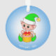 Joli elfe de Noël, nom personnalisé sur l'ornement bleu clair.