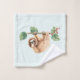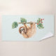 Serviettes avec un adorable parfum accroché à l'envers d'une branche d'arbre. La branche d'arbre est décorée de feuilles tropicaux et de baies. Placez-vous sur un arrière - plan vert clair.