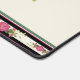 Joli tapis de bureau féminin, en ivoire, avec une grande fleur rose, au centre. Une bordure verte, rose et noire, en haut et en bas du tapis, est traversée par des fleurs roses. Personnalisez le monogramme à lettre noire unique pour répondre à vos besoins. Belle idée cadeau pour elle.