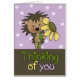 Joli petit hérisson tenant une grande fleur jaune sur un arrière - plan pourpre, au-dessus des mots "penser à vous" cartes de Ricaso licence cu de ScrappinDoodles
