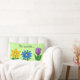 De jolies fleurs jaune doré, marguerites bleues et tulipes violettes fleuries dans l'herbe du jardin ornent ces coussins décoratifs avec un arrière - plan vert clair rafraîchissant. Sit Awhile est écrit en noir. Cliquez sur Personnaliser pour ajouter du texte à l'arrière du coussin. Belle pour les mois de printemps ou d'été ou à n'importe quel moment de l'année pour apporter l'extérieur à l'intérieur. Oeuvre artisanale originale de TamiraZDesigns.