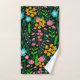 Une main élégante peinte à la main florale, remplie de rose, turquoise, bleu, menthe, jaune et blanc de petites fleurs de jardin, divers teintes vertes design feuillage, simple couleur noire tendance arrière - plan. Cette mode fantaisie, romantique, moderne, féminine, vintage décoration florale, motif originale, joli design floral peint à la main est parfaite pour l'usure quotidienne, la décoration de maison élégante, les fêtes et les décorations thématiques spéciales des jours.