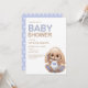 Cute invitation de baby shower lapin peluche dans les couleurs pastel.