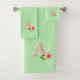 Joli monogramme rose avec fleur sur le kit de serviettes de bain vert citron. Monogramme peut être personnalisé.