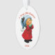 Personnalisez cette ornement de vacances acrylique avec votre propre date et d'autres texte avant et arrière. Image nostalgique d'un tot dans un manteau rouge qui s'embrasse avec joie de l'Esprit de Noël. Voir aussi d'autres ornements et objets de cette collection de design.