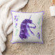 Un joli décorateur de chambre pour fille lance l'oreiller, avec des graphiques de la tête d'une licorne violette et des vignes pourpres, lavande et vert menthe. Une bordure violette court autour du bord extérieur du coussin. Customisez d'ajouter du texte à ce coussin coloré. Décor de licorne correspondant disponible.