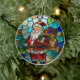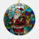 Joli ornement de Noël en faux vitrail avec le Père Noël portant un sac de cadeaux. Joli fond artistique. Cet ornement est un bel ajout à votre collection d'ornements et fait également un excellent cadeau. Voir les articles coordonnés dans notre boutique, Enchanted Finch.