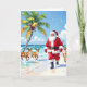 Une carte de Noël aquarelle adorable pour les oiseaux de neige ou toute personne qui vit dans un climat tropical et échappe au froid de l'hiver ! Une illustration aquarelle de Père Noël sur la plage avec ses rennes, entouré de vagues océaniques bleues et de palmiers décorés de lumières de Noël. À l'intérieur de la carte, vous pouvez ajouter votre propre message de vacances personnalisé et télécharger une photo de vous-même ou de votre famille !