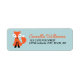 Jolies étiquettes d'adresse de retour avec un petit renard sur un arrière - plan bleu poussiéreux. Ajoutez votre propre nom et vos coordonnées. Conception et illustration de MheaDesign. Pour toute demande concernant l'image ou la conception, veuillez me contacter via ma page facebook : https://www.facebook.com/MheaDesign