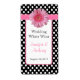 Élégant pois noir et blanc mini étiquettes de vin mariage prêt pour vous à personnaliser avec vos propres informations. Une zone de texte blanc aux bords roses, au milieu a du texte rose et noir personnalisé et des graphiques d'un ruban rose, avec une marguerite Gerber rose décorant le dessus. Idéal pour votre réception de mariage ou vos vins faits maison.