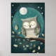 Affiche d'un mignon hibou dormant sous la Lune et les Étoiles. Douce décoration pour une belle chambre d'enfant ou une nurserie. Illustration disponible en impression et fichier téléchargeable.