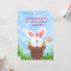 Joli lapin blanc et rose dans un pot de fleurs avec un papillon adorable Invitations de fête d'anniversaire.
