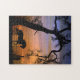 Un joli cheval et un arbre avec clôture de campagne au lever du soleil de couleur sud-ouest, c'est un puzzle amusant et coloré.