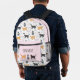 Ce sac à dos de chat à la patte est destiné aux amoureux de les chats. Ce design présente une variété de races de chats, tuxedo, tabby, orange, gris, blanc et noir et blanc avec des empreintes de pawprints roses.