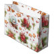 Un très joli sac cadeau de Noël. De belles boules de Noël rouges, des étoiles, des bougies rouges, des cloches de Noël dorées et des boules de neige de Noël lui donnent un air festif. Vos cadeaux auront l'air très joyeux dans ce sac.