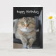 Jolie nouilles écossaises le chat est assis sur sa chaise et vous souhaite un joyeux anniversaire