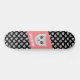 Un joli skateboard noir avec une empreinte de chat et de texte "meow".