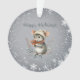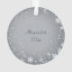 Une jolie souris grise habillée pour l'hiver avec un bonnet et une écharpe tient des baies et vous souhaite « Joyuses Fêtes ». Elle est entourée d'un motif de flocon de neige blanc. Le vœu peut facilement être changé en celui que vous préférez.
