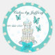 Design élégant turquoise et bronzé avec un gâteau mariage et un arc turquoise pâle, sur un autocollant rond. Customisez le texte pour répondre à vos besoins. Parfait pour votre entreprise.