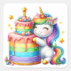 Joli Stickers Colorés Unicorne. Unicorne tenant un gâteau coloré. Merveilleuse Couleurs Arc En Ciel, Jolie Unicorne Magique. Stickers étonnants pour toutes les occasions, coller ceux-ci n'importe où pour égayer votre journée.