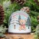 Cet adorable globe de neige présente l'image d'un ours en peluche dans un pays merveilleux d'hiver avec de la neige et des arbres. Le salut 'Joyeux Noël' se courbe sur le dessus de l'image en lettres rouges. Le revers de la page comporte également une scène de neige hivernale, et peut être personnalisé avec un nom. Idéal comme un joli cadeau festif.