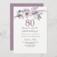 Jolie Purple Floral 80th Birthday Party Invitation Carte parfaite pour votre occasion spéciale Collection Correspondance dans Niche et Nest magasin. Avec l'aimable autorisation de : https://www.etsy.com/shop/SmallHouseBigPony