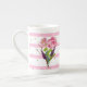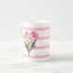Jolie tasse de porcelaine rayée rose et blanc, avec de petits pois verts et de beaux bouquets de fleurs d'aquarelle. Personnalisez le texte vert pour vous-même ou comme une belle idée cadeau pour elle.