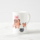 jolie porcelaine, bonne dimension effet brillant bien dans l'ensemble. Le motif et les couleurs sont réussis.Je trouve néanmoins dommage de ne pas occuper tout l'espace avc le motif car la partie rouge au dos de la tasse est trop présente et pas intéressante visuellement.