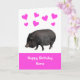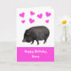 Photo mignonne d'un cochon vietnamien ceint de coeurs d'amour roses pour souhaiter un joyeux anniversaire à votre être aimé. Personnalisez facilement cette carte en modifiant le texte modèle à l'avant et à l'intérieur.