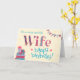 Une jolie carte d'anniversaire pour une femme très spéciale, avec une pile de cadeaux d'anniversaire, Bunting et Flowers. Le mot "Femme" est en lettres à motifs et Joyeux anniversaire est en bleu turquoise, le tout sur un arrière - plan crème, avec des coeurs éparpillés un peu partout. Un design numérique de Judy Adamson pour la collection Granny Prints.