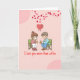 Une carte de vœux de la Saint-Valentin douce et romantique représentant un couple illustré mignon partageant des moments de café chaud avec le message :