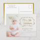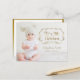 Annoncez l'arrivée de votre nouvelle joie de Noël avec ce design mignon avec un cadre doré en spirale et un texte en calligraphie "Merry Little Christmas", deux lignes de texte personnalisé, un overlay opaque à lumière douce en option et un emplacement pour votre photo souvenir. Un dégradé doré coordonné au verso avec un champ d'adresse modifiable. Chaque élément est modifiable.
