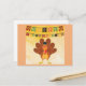 Souhaitez à tous un joyeux Thanksgiving cette année avec cette carte postale mignonne mettant en vedette un dindon de dessin animé tenant une citrouille !