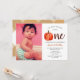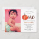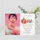 Le thème automne et automne invitation premier anniversaire avec la photo de bébé, avec citrouille aquarelle peint à la main et quelques éléments typographiques. Idéal pour votre fête d'anniversaire citrouille simple et moderne.