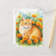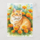 Jolie carte postale de chat roux avec fleur d'été souci pour Postcrossing