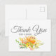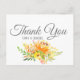 Belle, moderne et élégant Carte de remerciements de mariage dispose de joli bouquet de spray rose en été orange et jaune, avec texte entièrement personnalisable en caractères gris complémentaires sur arrière - plan blanc.