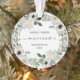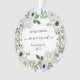 Ce joli ornement de Noël est orné d'une couronne d'aquarelle remplie de fleurs blanches et douces de gris, d'élégants feuilles verts et d'un script moderne branché. Ajoutez vos noms et la date à laquelle vous vous êtes marié pour le souvenir parfait du mariage.