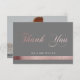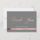 calligraphie rose gold écriture personnalisée "merci" sur un fond gris fumé avec bordure rose gold et vos monogrammes en police sans empattement. Le verso comporte votre photo personnalisée pour remercier vos personnes spéciales avec style