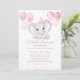 moderne élégant mignon adorable rose et gris mignon Eléphant Fille Ballons Baby shower Invitation