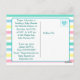 Voici des invitations pour bébé garçon et garçon et fille jumeaux bébé douches à la main mignonne. Personnalisez-les en ajoutant les informations de votre parti dans la zone de personnalisation. Des rayures roses, bleues, vertes, violettes et bronzées dans l'arrière - plan avec un mignon jumeau garçon et fille dans chaque coin. Ces invitations par carte postale sont un moyen très abordable d'obtenir des invitations préfaites à des douches pour bébé personnalisées. Ces bébés représentent des bébés afro-américains.