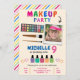 Éblouissez vos invités avec cette invitation colorée à la fête d'anniversaire girly avec des cosmétiques mignons et une typographie vibrante contre un arrière - plan beige. Ajoutez simplement les détails de votre événement sur ce modèle facile à utiliser et ornez cette carte avec la photo préférée de votre enfant pour en faire une invitation unique. Retournez la carte pour révéler un motif à rayures colorées au dos de la carte.