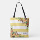 Ce joli sac fourre-tout présente un design à double face avec des rayures horizontales larges bananes jaunes sur un arrière - plan blanc, agrémenté de belles imprimés de fleurs jaunes et oranges et d'un nom personnalisé sur un étiquette blanc. Cliquez sur le bouton "Personnaliser" pour ajouter votre propre nom, monogramme ou initiales, arranger le texte, changer la police, la couleur de police et la taille de police, changer la couleur de l'arrière - plan et/ou supprimer n'importe quel élément, comme vous le souhaitez.