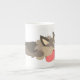 jolie porcelaine, bonne dimension effet brillant bien dans l'ensemble. Le motif et les couleurs sont réussis.Je trouve néanmoins dommage de ne pas occuper tout l'espace avc le motif car la partie rouge au dos de la tasse est trop présente et pas intéressante visuellement.