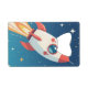 Jolie fusée rouge et blanche décollant dans l'espace avec des étoiles et des nuages fantaisistes.