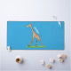 Du joyeux safari. Cette jolie girafe a un papillon sur le nez avec un arrière - plan bleu.