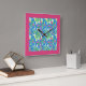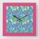 Une très jolie horloge murale carré, avec un motif de Faux orange en fleurs crémeuse et rose vif Weigela sur un arrière - plan bleu ciel, d'une aquarelle peinte à la main par Judy Adamson. Cette horloge a une bordure rose vif mais d'autres couleurs sont également disponibles.