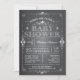Un style populaire de tableau de bord et une variété de polices de caractères jolies et fantaisistes font de cet hôtel un invitation unique à un Baby shower amusant. Des rouleaux. les doodles, les points et les courbes abondent pour un effet amusant en blanc chalky avec des accents de bleu bébé, le tout dressé contre un arrière - plan noir en tableau noir.