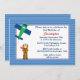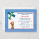 Cette invitation de fête d'anniversaire de 5x7 a un arrière - plan à bandes bleues avec un avion volant et un pilote au fond. Vous pouvez facilement customiser vos informations à droite. ©2010 JD Digi Designs